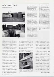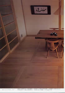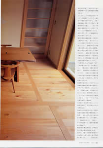 二代目の坂本氏は「住宅は, できあ がった時より住んでからのことを考 えて」と杉の乾燥を研究し, コンテ ナを改良した自社オリジナルの乾燥 機まで作り出したほどの, こだわり の人物である. 1 0年前より智頭杉の大径木から作り 始めた壁材は,柾目の部分が非常に 繊細で,壁や天井に使うと部屋中が 和らいだ感じがする. 全国でも数少ない高林齢の杉の森林 が多く残されている所でもあり,一 度足を運ばれることをお勧めしたい. |