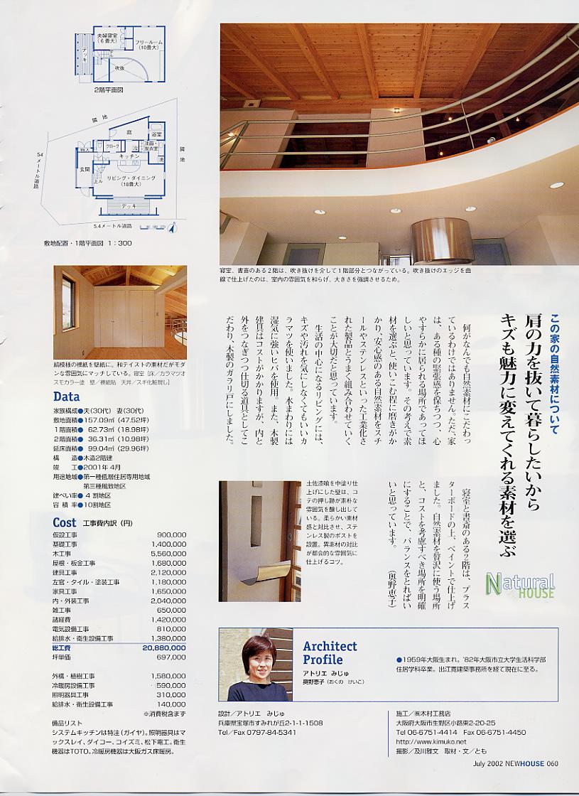 ニューハウス 2002年7月号 木・土・漆喰を つかって建てた家 西宮市■Tさんのお宅 設計=アトリエみじゅ 施工=木村工務店